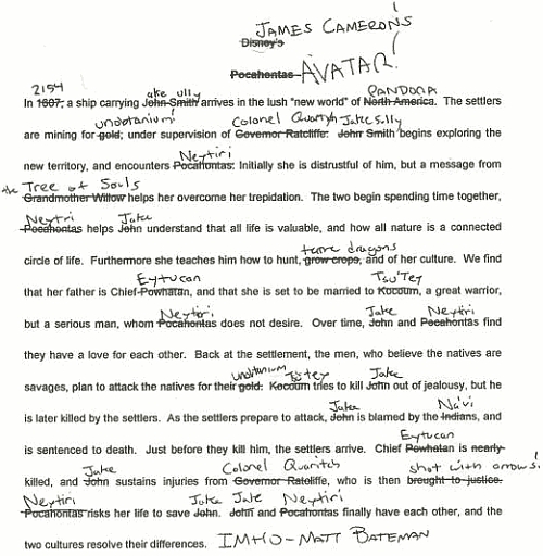 El borrador de James para la peli.